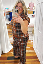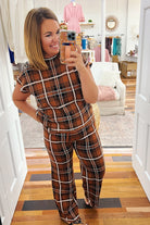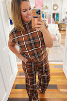The Sasha Plaid Wide Leg Pants mix caramel and black plaid with a super soft and stretchy fabric for a dressy look that feels cozy. Perfect for adding a sophisticated yet playful touch to any outfit, these pants balance comfort and style in the most perfect way. Pair with the matching top for the complete outfit.