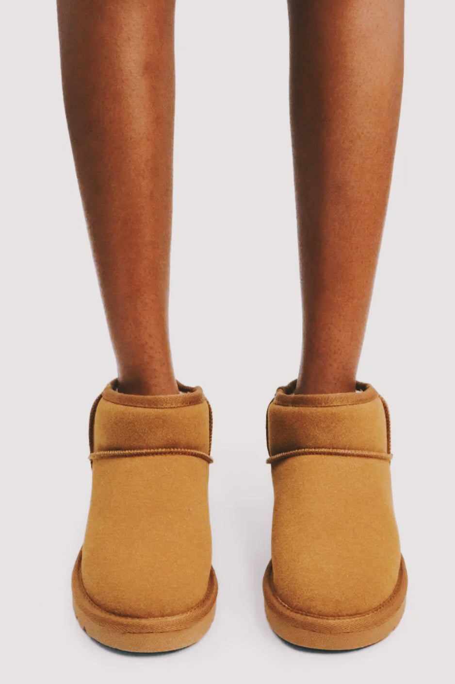 Step into cozy bliss with the Ultra Mini Suede Boot in Chestnut—the seasonal essential that gives major UGG energy without the price tag. Wrapped in buttery soft suede and lined with plush sherpa, these boots cradle your feet in pure comfort. Whether you're running errands or settling in for the season, this playful boot delivers the warmth and style you crave.