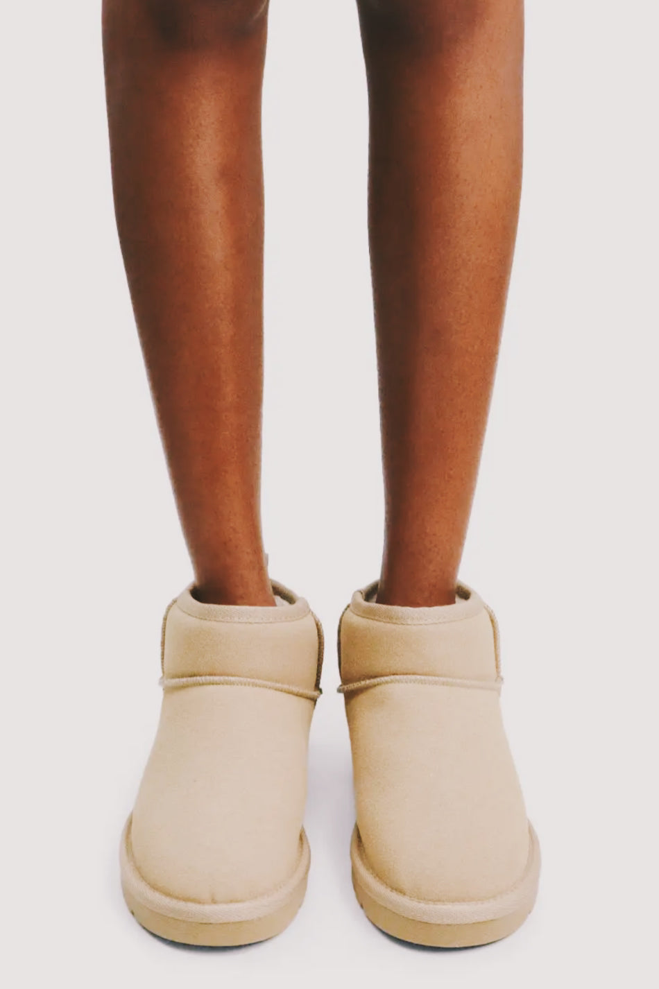 Step into cozy bliss with the Ultra Mini Suede Boot in Sand—the seasonal essential that gives major UGG energy without the price tag. Wrapped in buttery soft suede and lined with plush sherpa, these boots cradle your feet in pure comfort. Whether you're running errands or settling in for the season, this playful boot delivers the warmth and style you crave.
