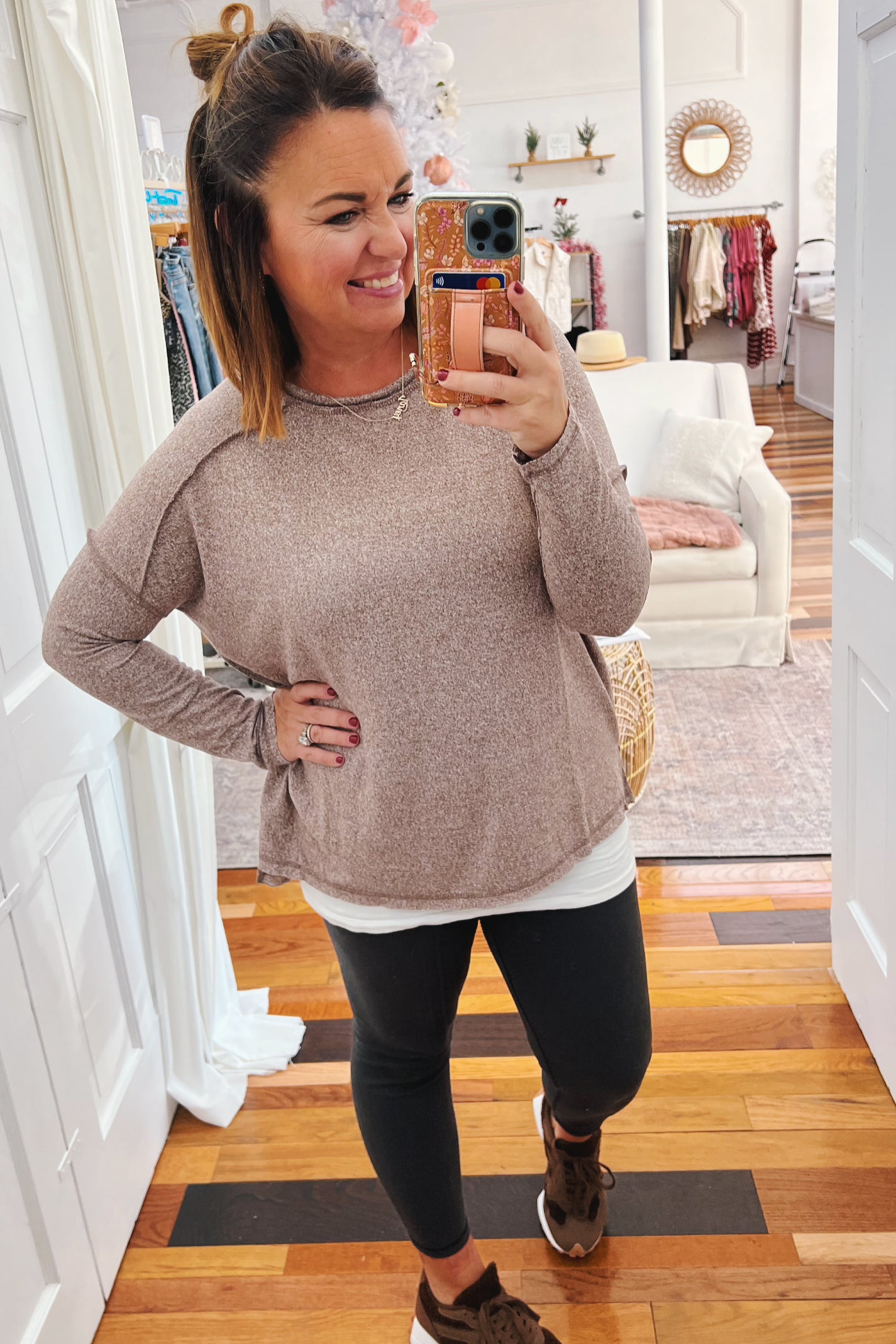 The Alexandria Top is your new go-to for effortless layering and all-season comfort. Made from lightweight, brushed fabric that feels insanely soft against your skin, this top delivers the cozy vibes without the bulk. Super stretchy construction moves with you whether you're running errands or lounging at home, while the legging-friendly fit pairs perfectly with your favorite bottoms. Versatile enough for any season, it's the wardrobe staple that does it all.