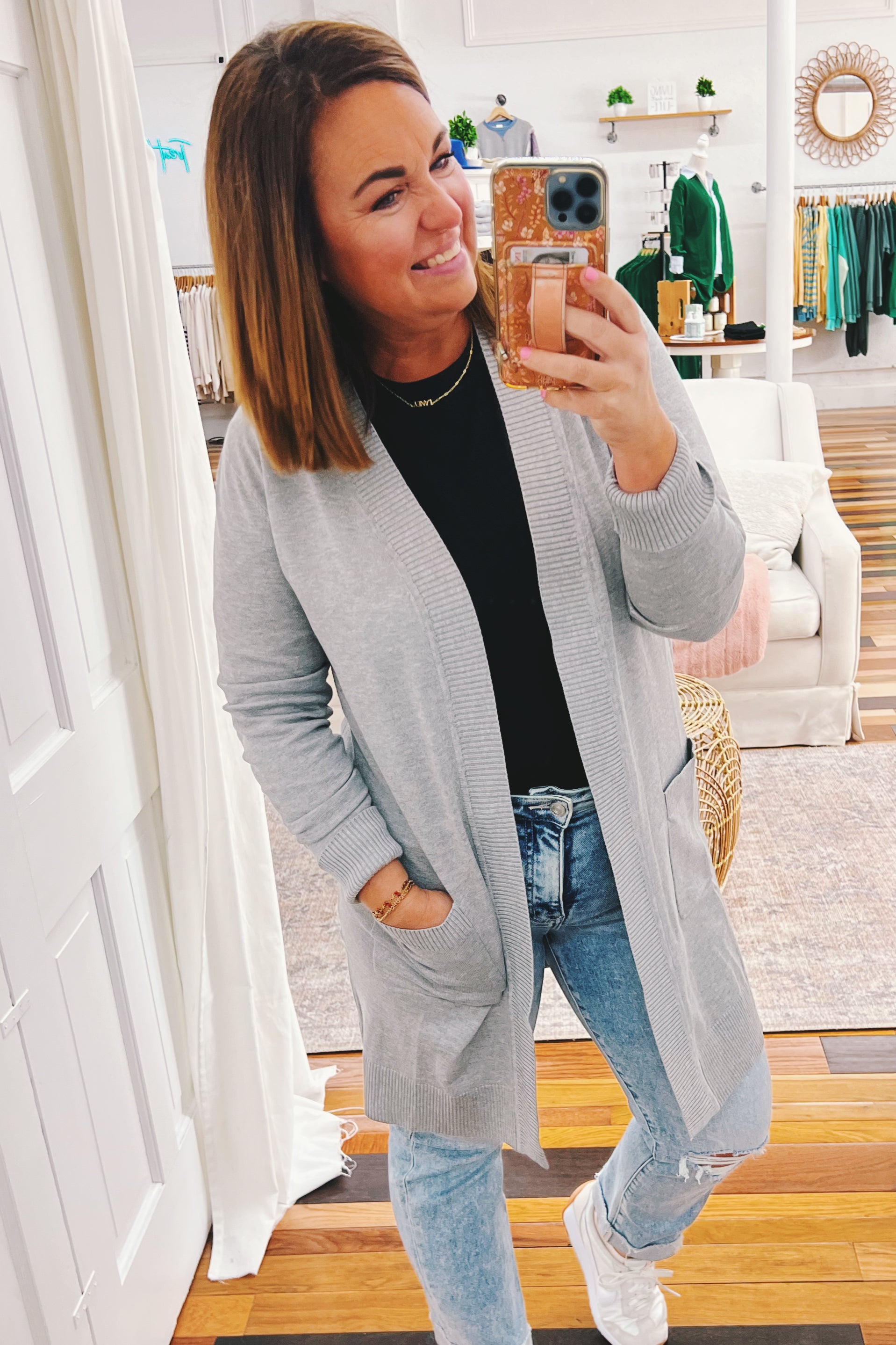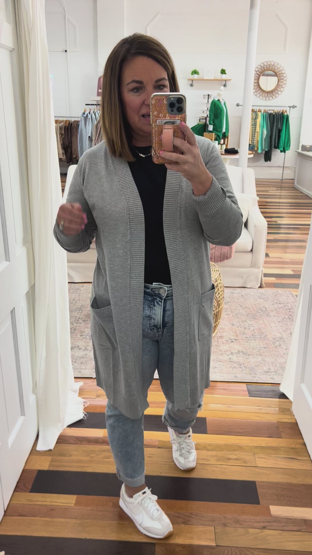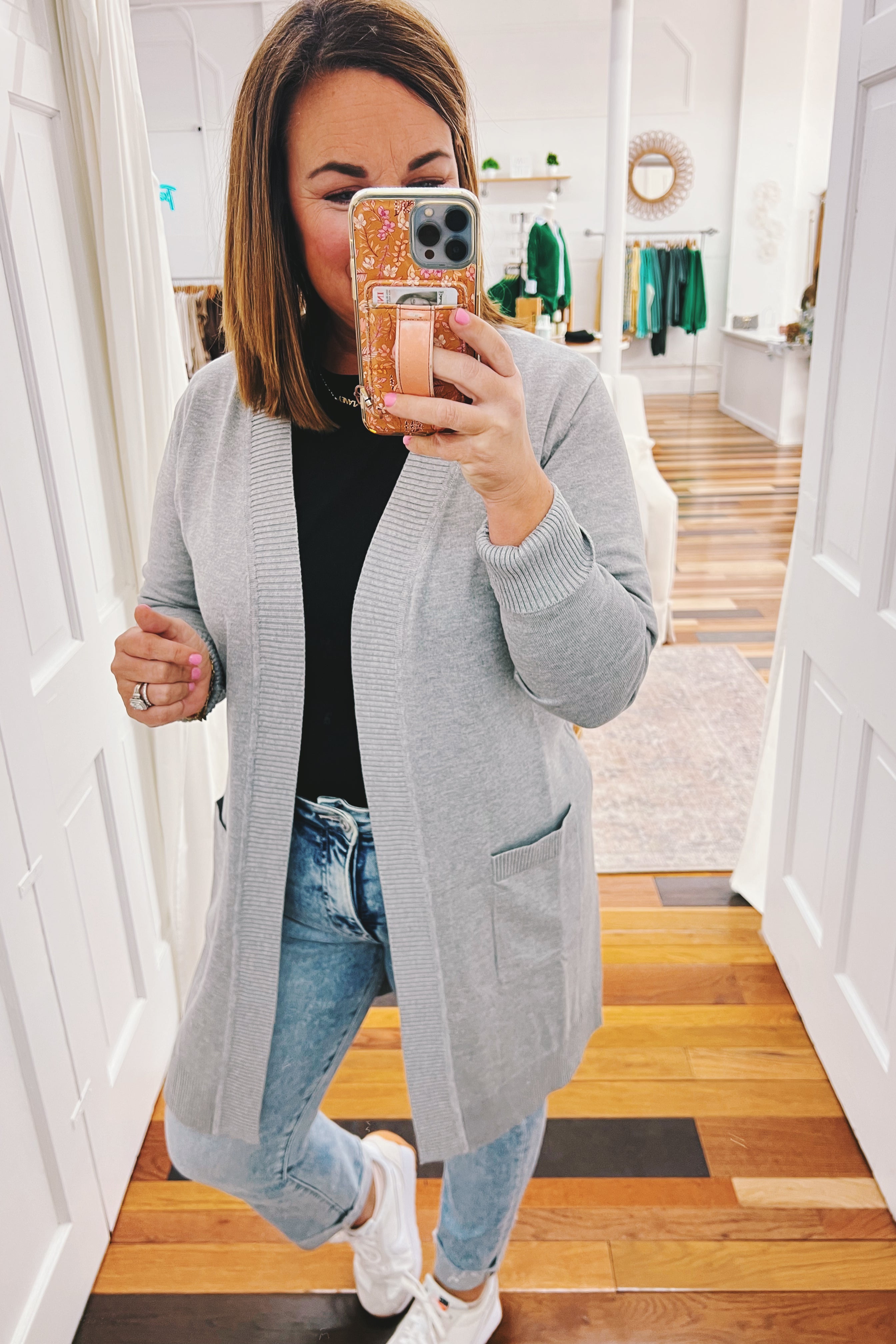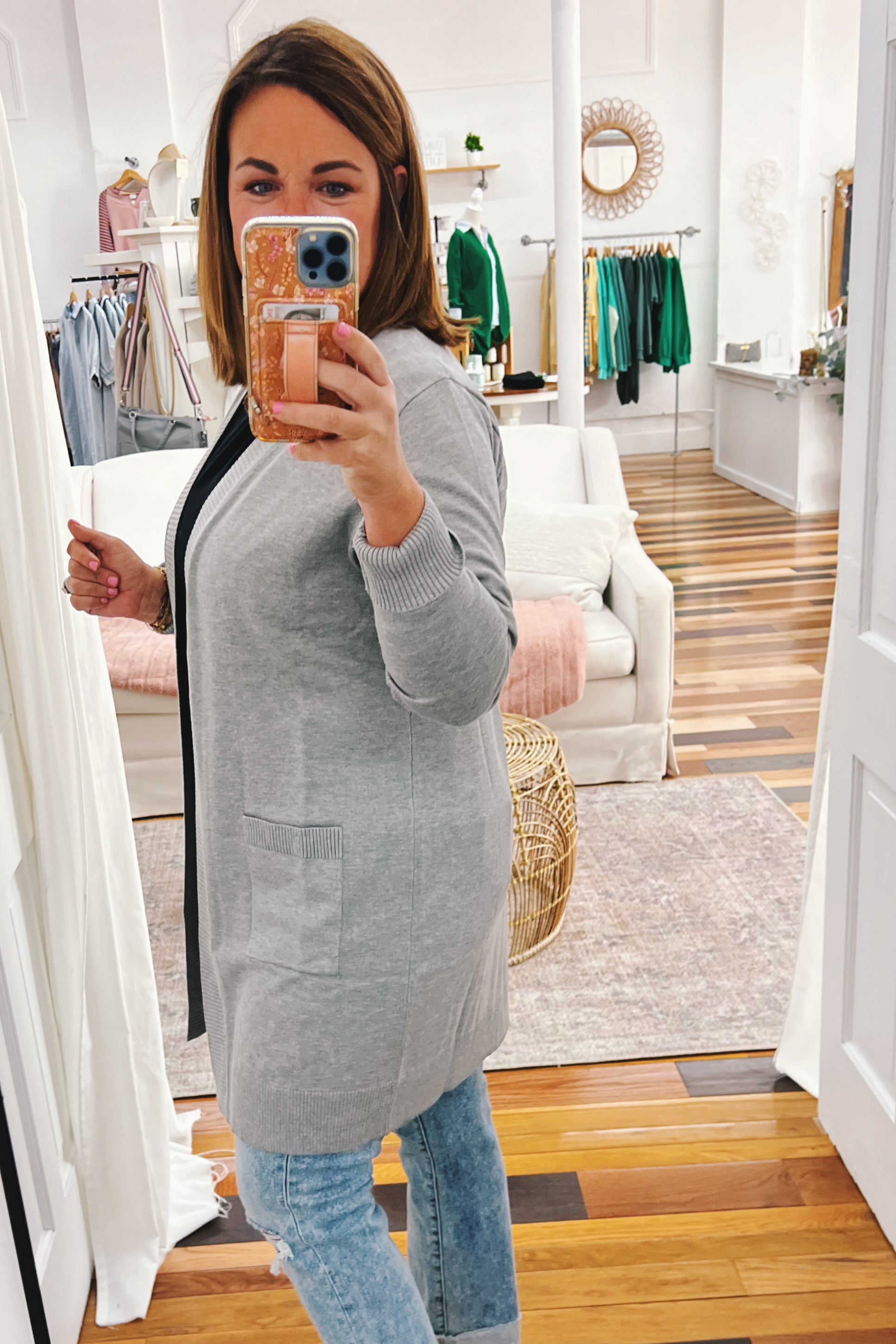 - heather gray long sleeve cardigan