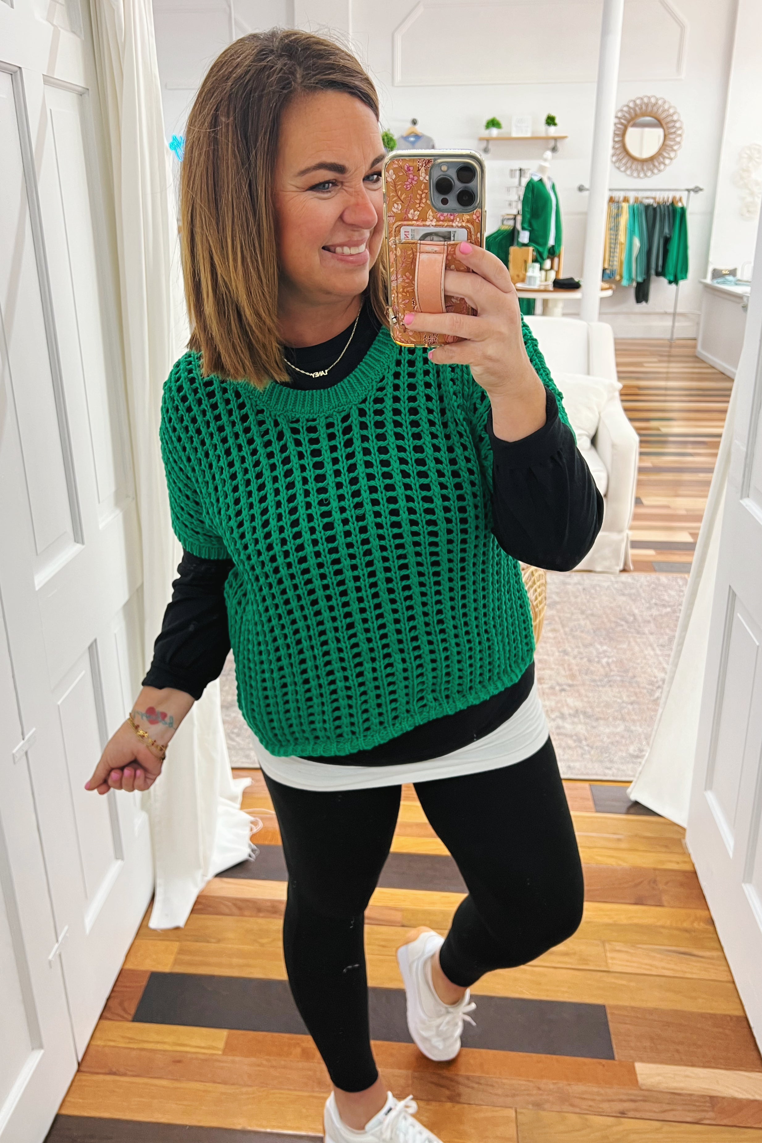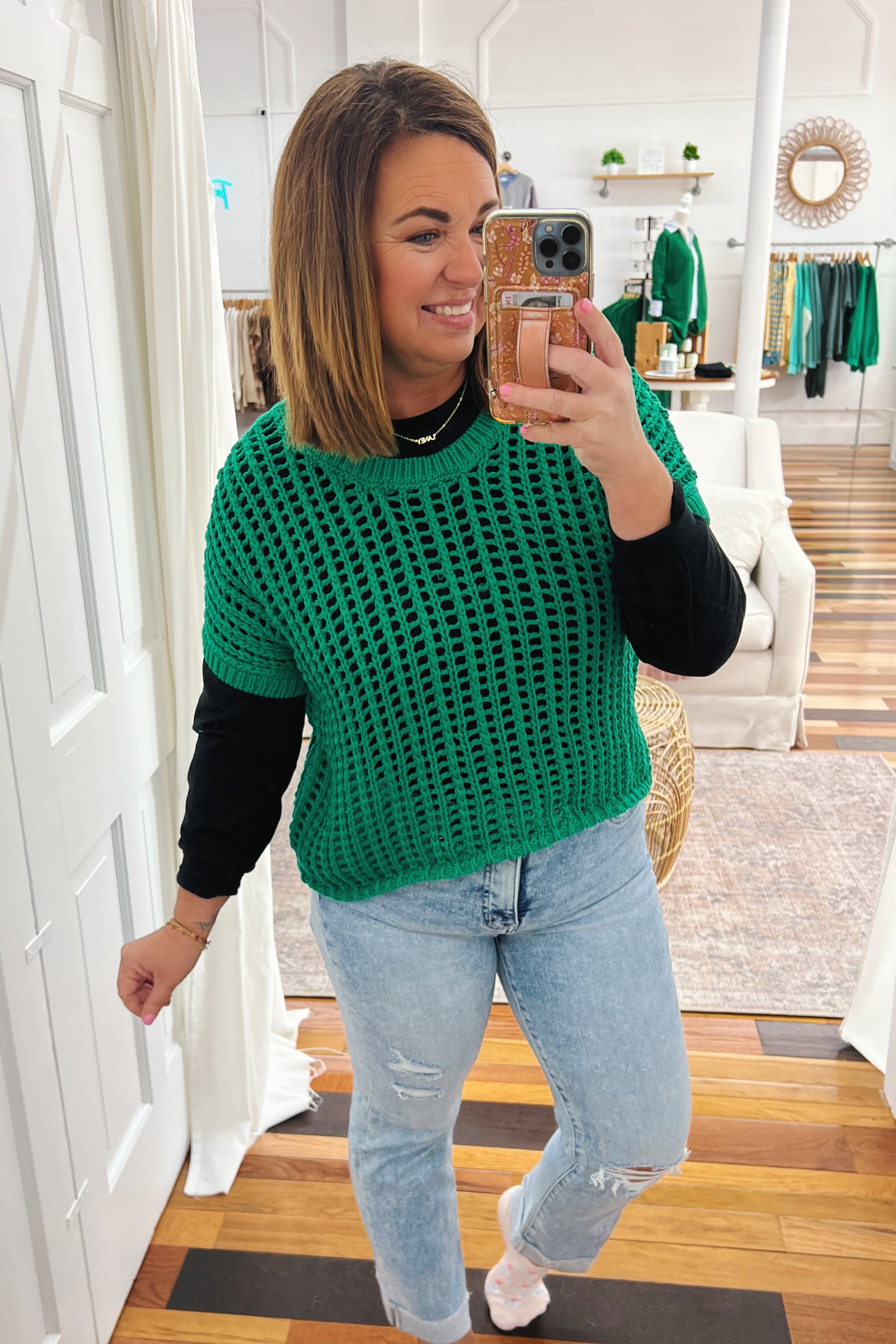 Going to a St Patty's Day party? This is the MUST HAVE!! Turn heads in the Lillian Mesh High Low Top. This trendy kelly green stunner features a boxy cut that's refreshingly modern and a fun high-low hem that adds movement and edge. The mesh knit brings just the right amount of funk—perfect for layering with a long sleeve tee, tank top or jacket. Dress it down with your favorite jeans for weekend vibes or elevate it for evening plans. Effortlessly cool, endlessly stylish.