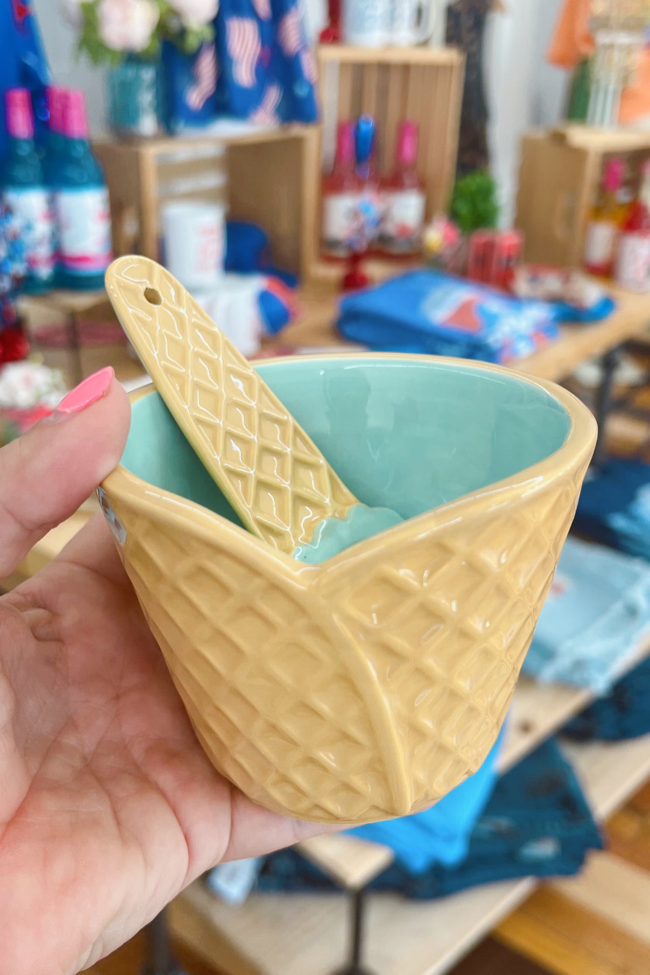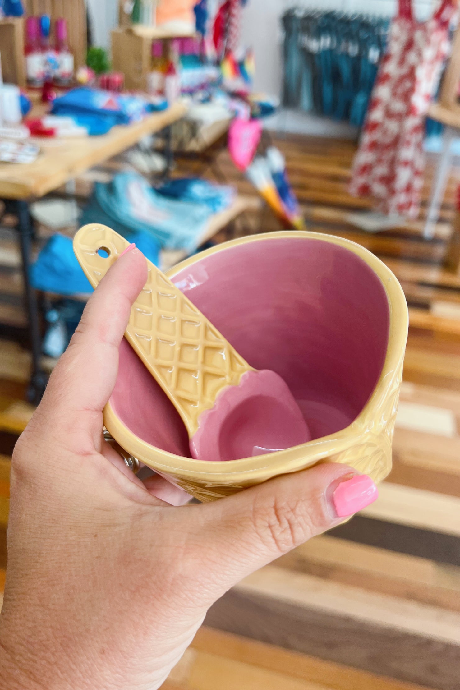 Enjoy your favorite sweet treat with the Waffle Cone Ice Cream Bowl with Spoon. Made from ceramic, this fun and playful bowl is shaped like a waffle cone, making every scoop feel extra special. It’s the perfect gift for ice cream lovers who want to add a little whimsy to their dessert time.