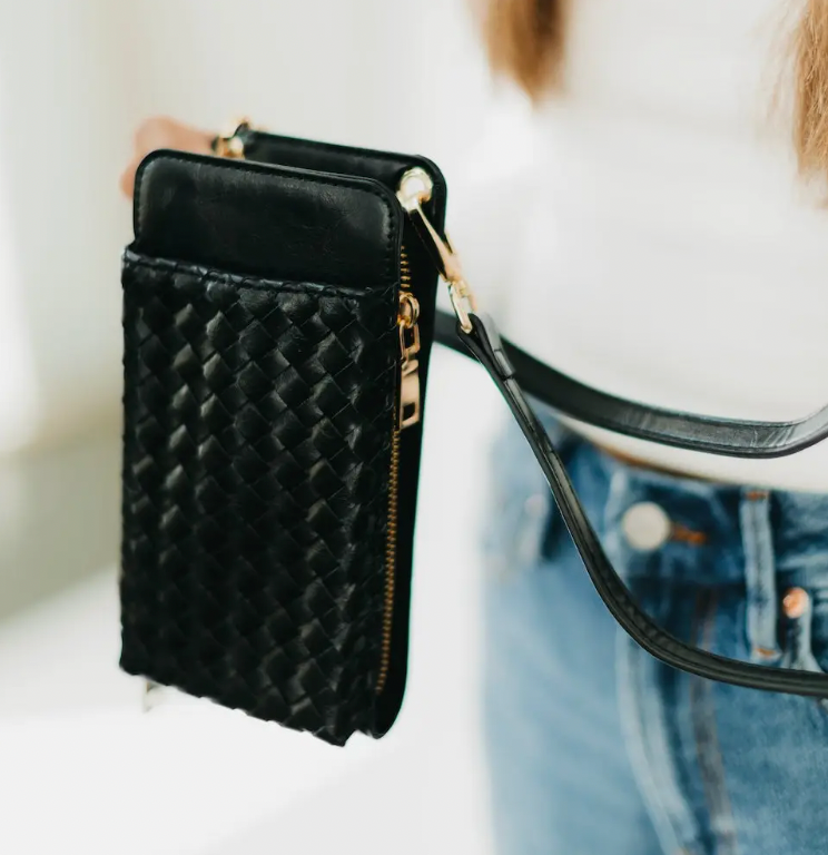 Meet our new WOVEN Double Duty Phone Bag! Slip your cell phone in the outer pouch for easy access, then unzip the bag to discover a cash pocket, card holders, and a coin purse - no more rummaging around for your stuff! Keep your essentials close by and always accessible. Available in 2 beautiful colors!