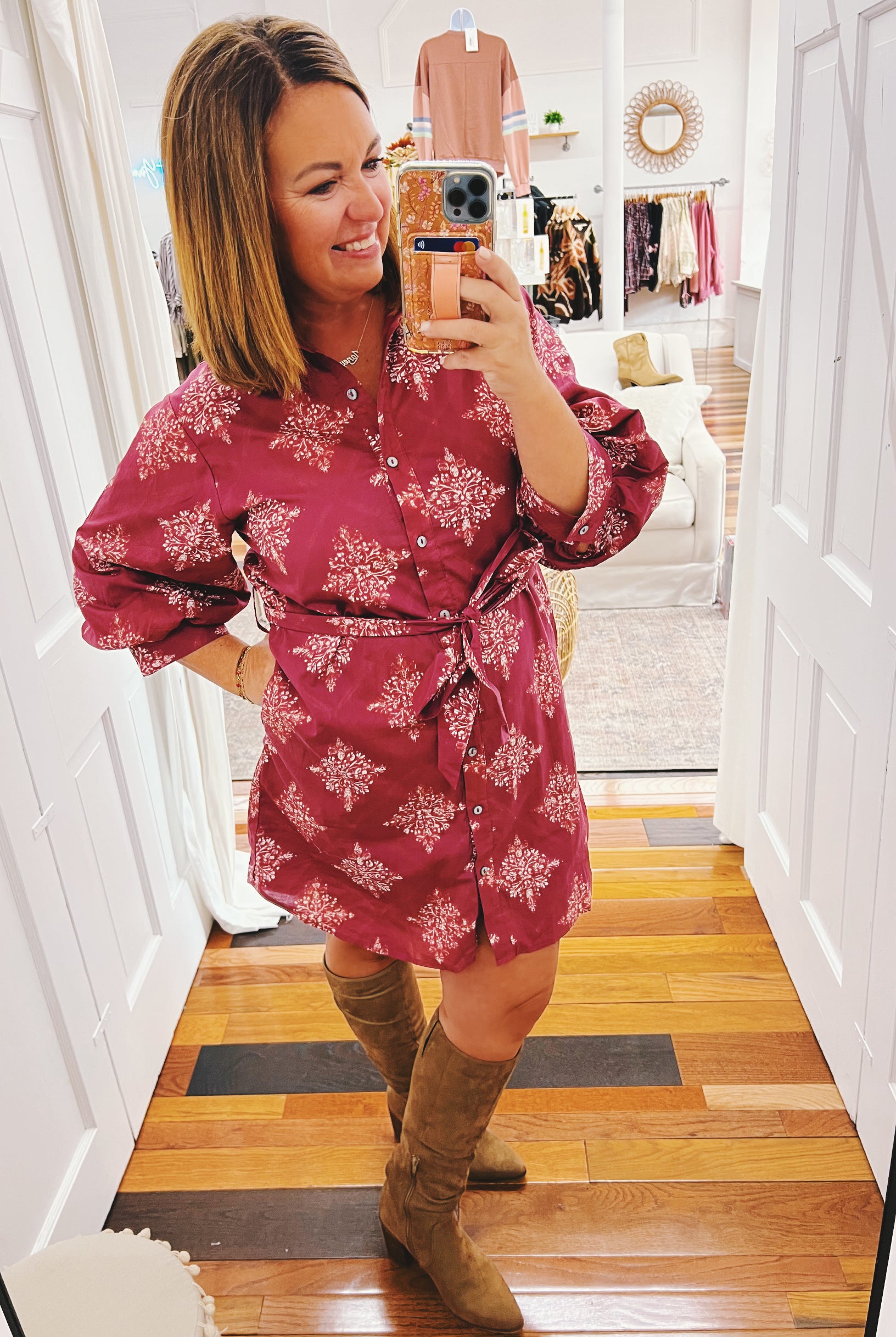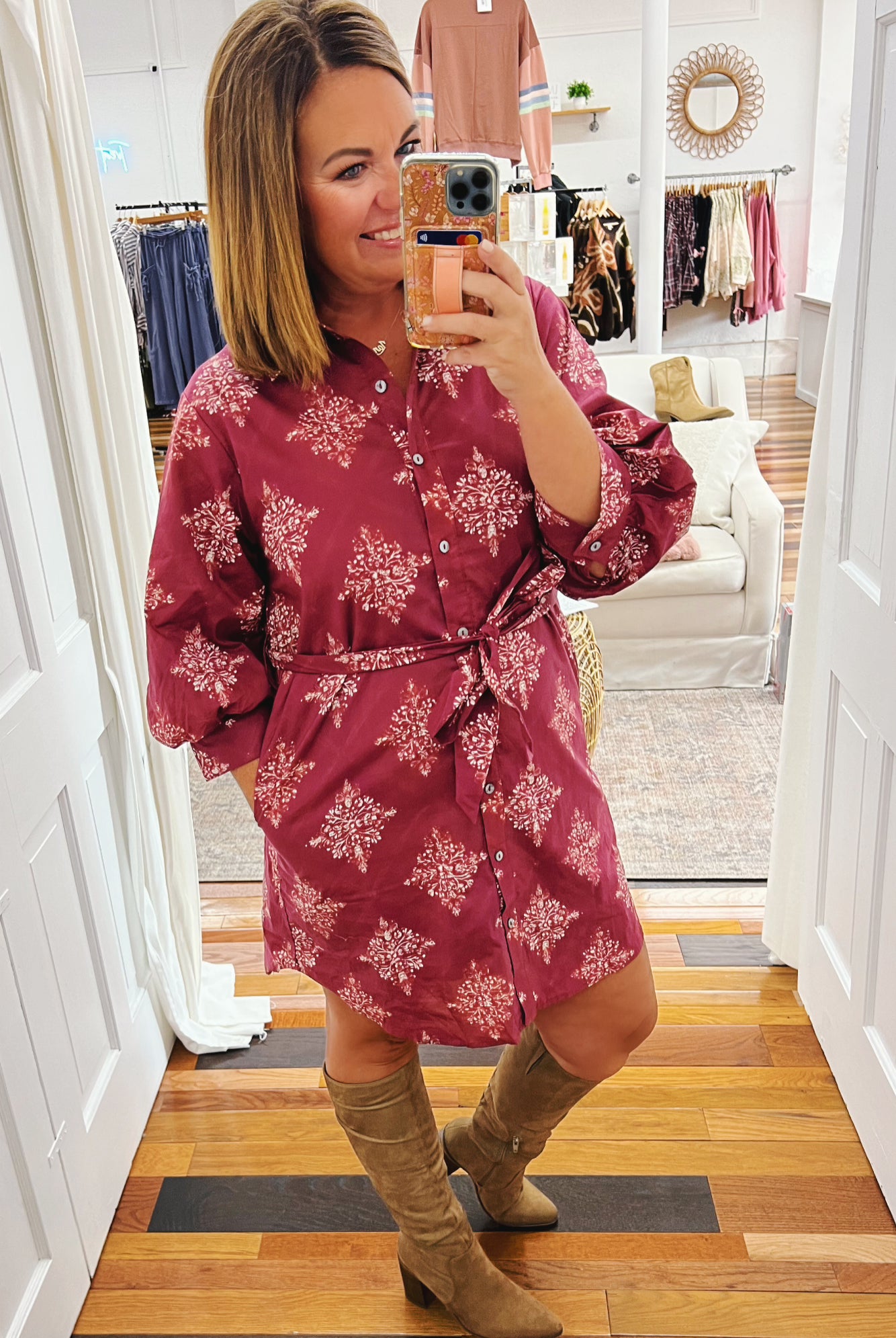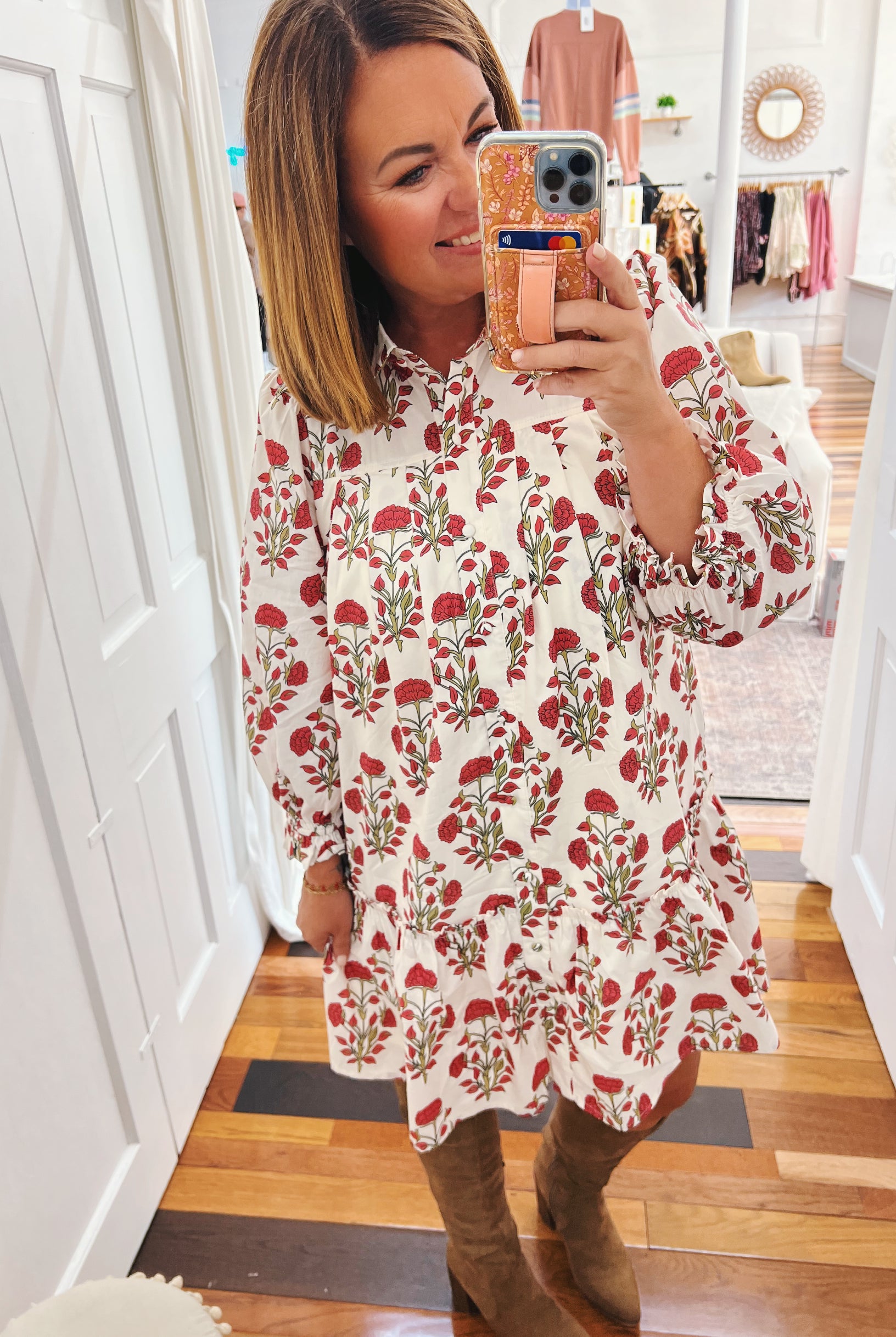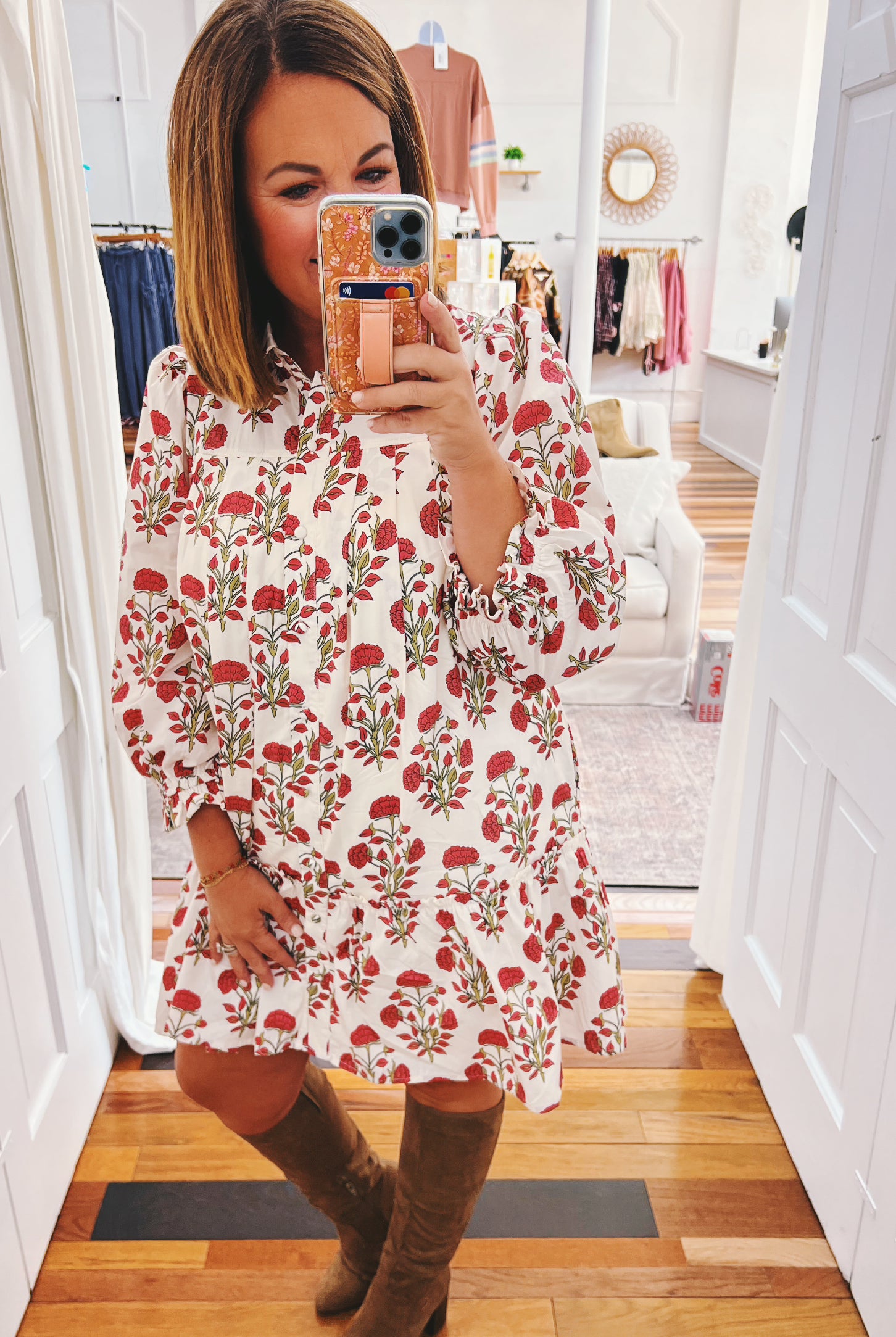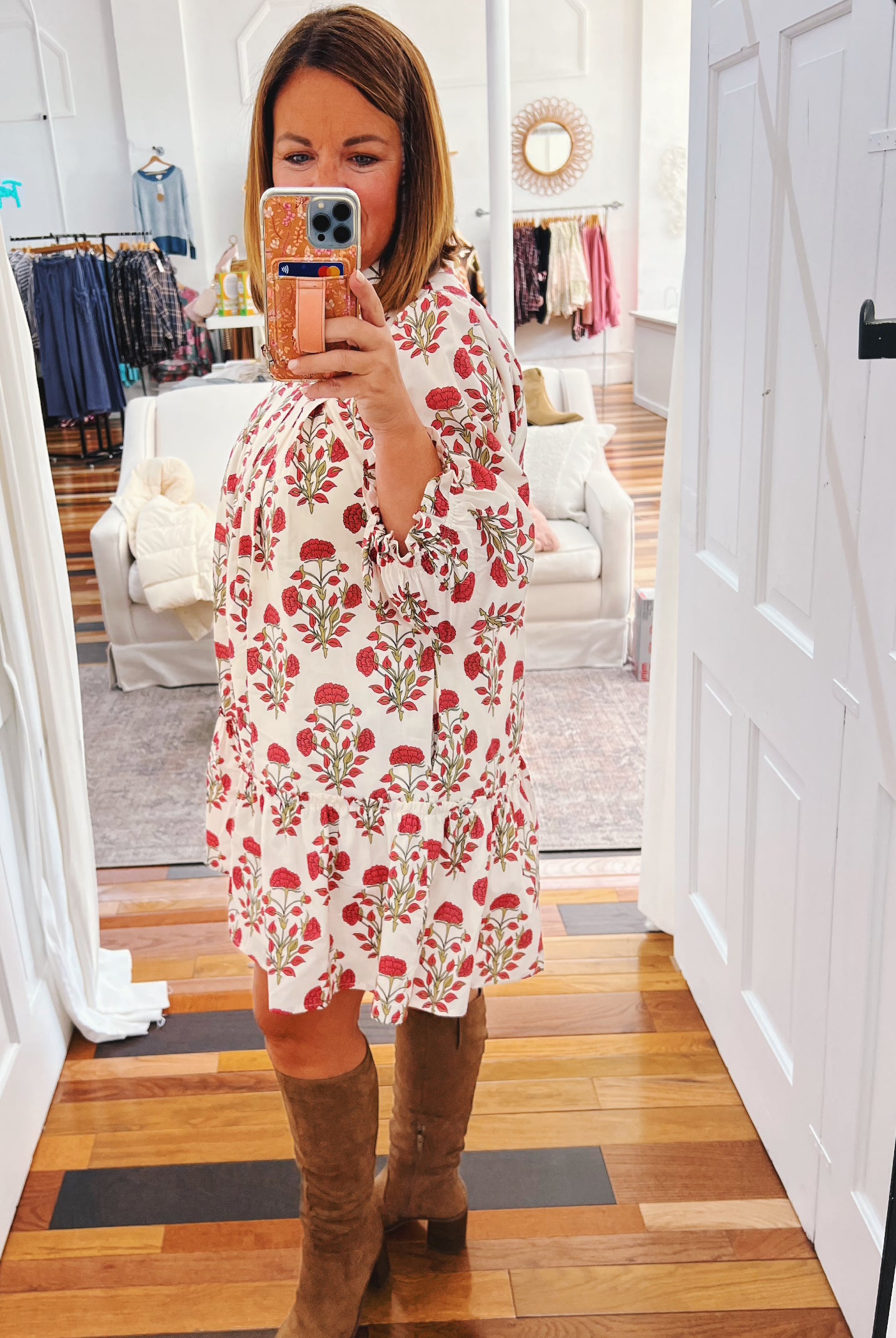 Brighten your wardrobe with the Imogene Floral Ruffle Trim Top in ecru, adorned with charming burgundy floral prints. Its playful ruffle trim adds a touch of vintage sophistication, making this piece both timeless and classic. Perfect for those who love a little flair with their everyday style!