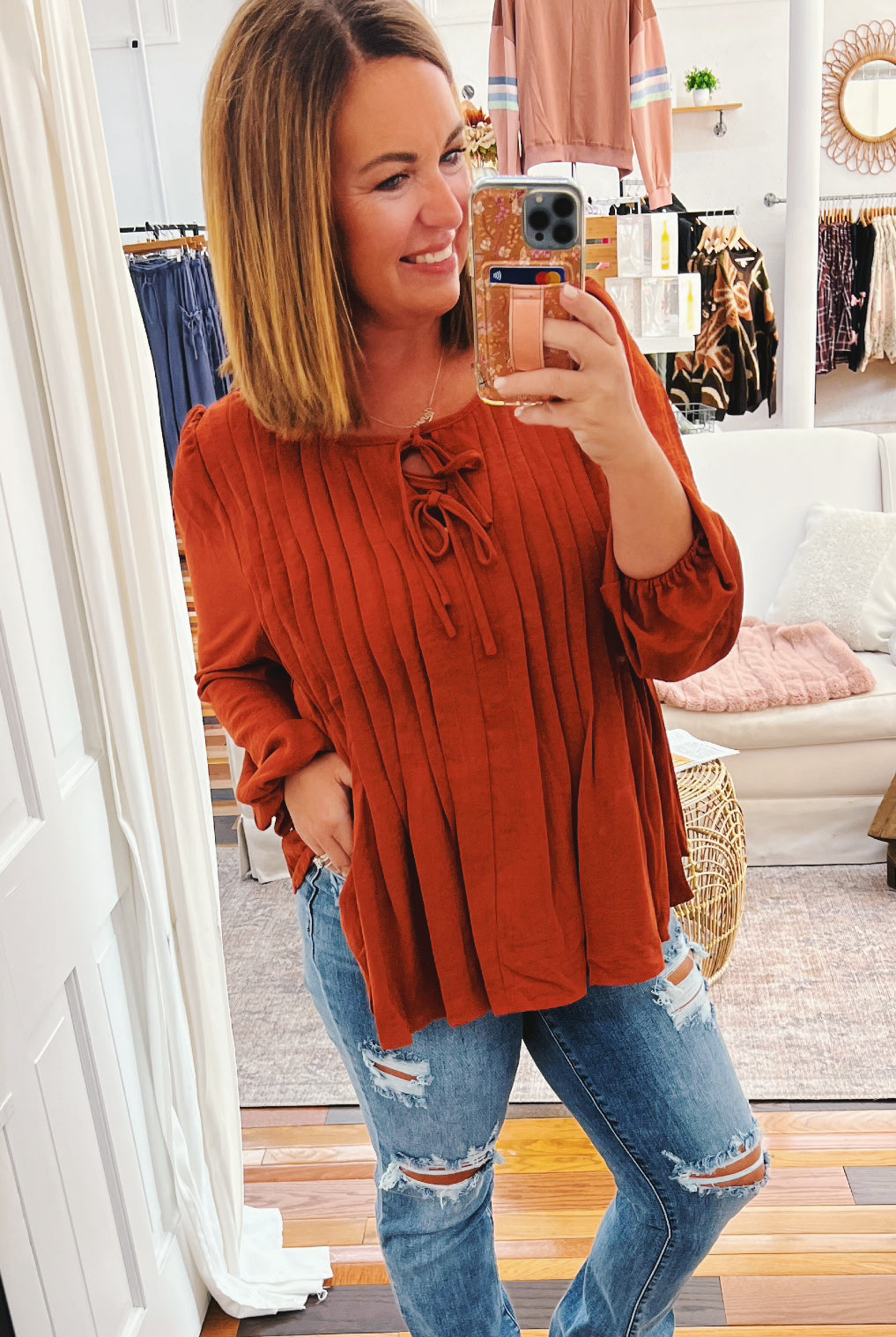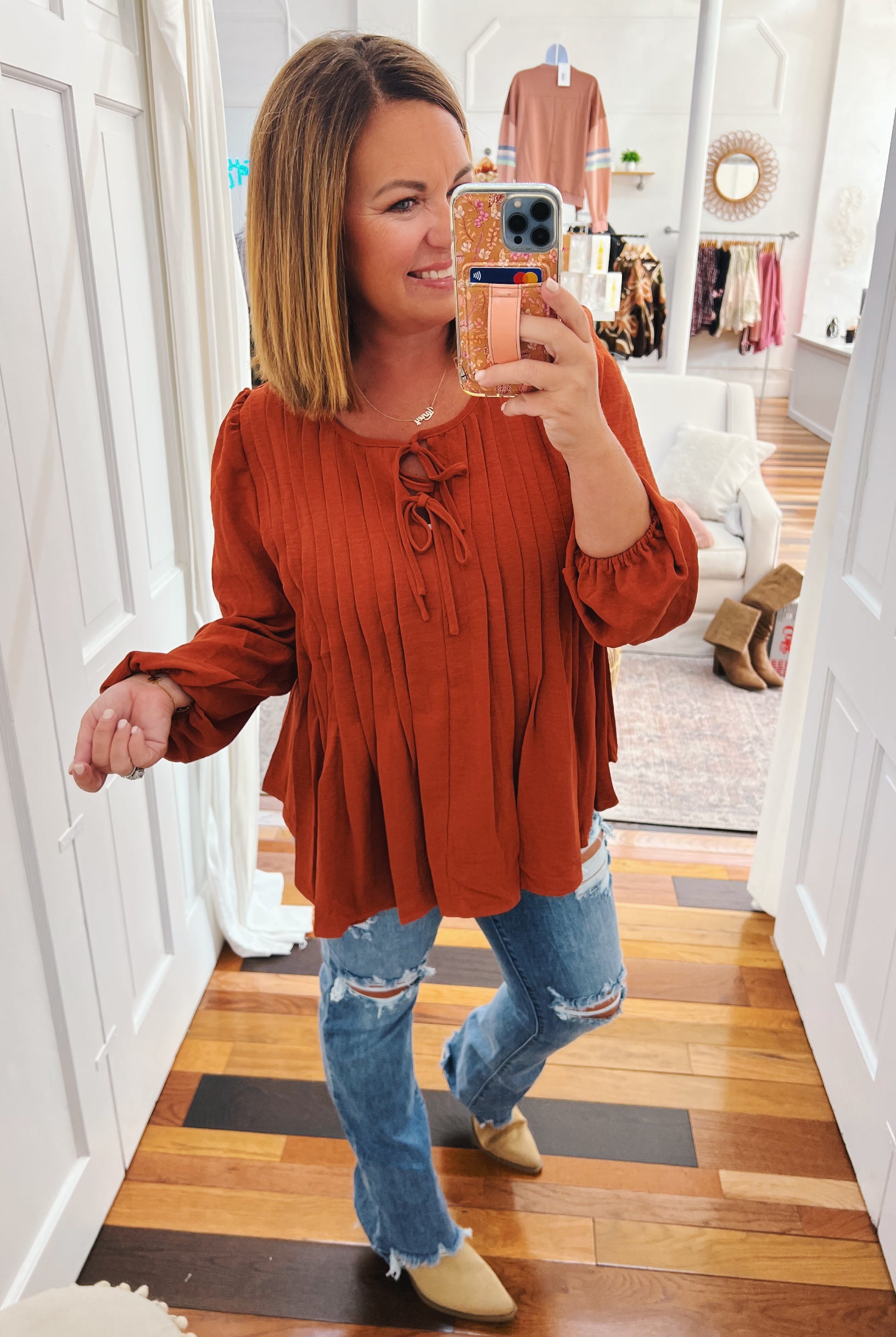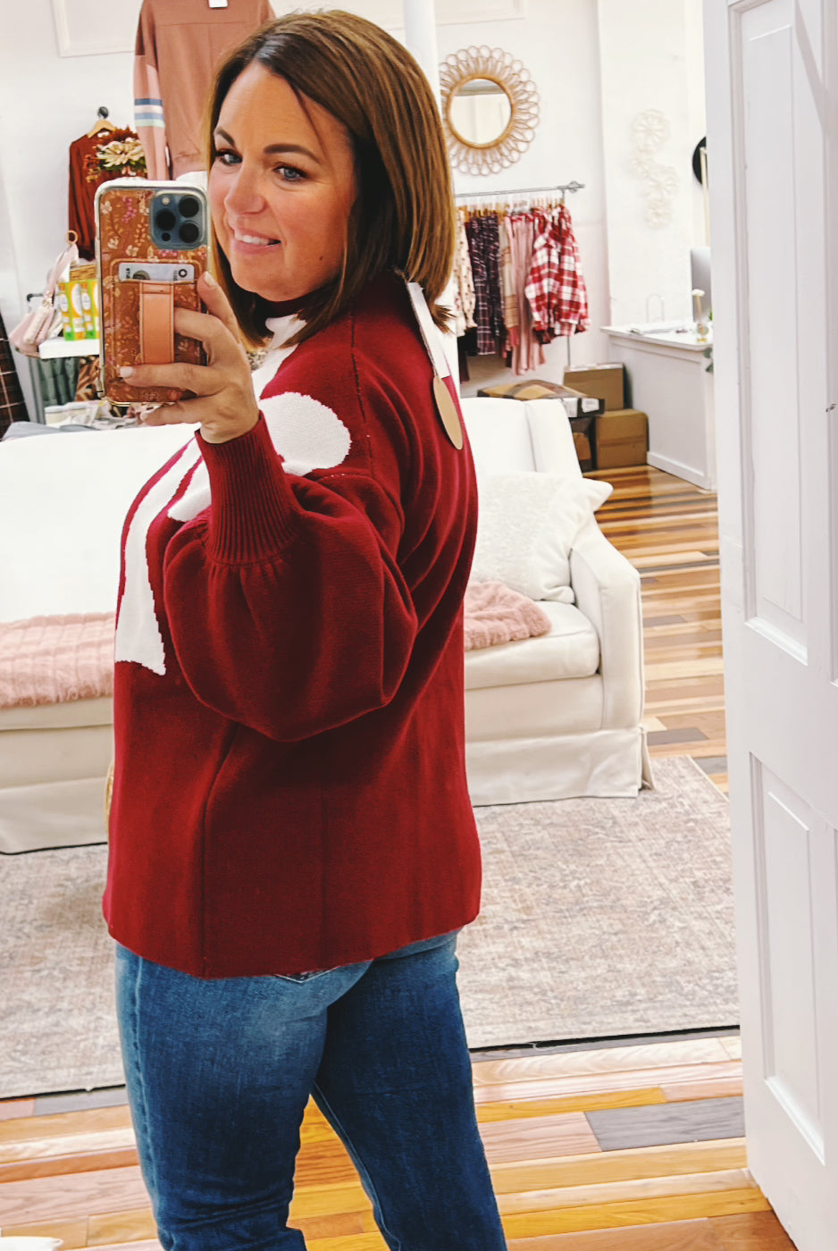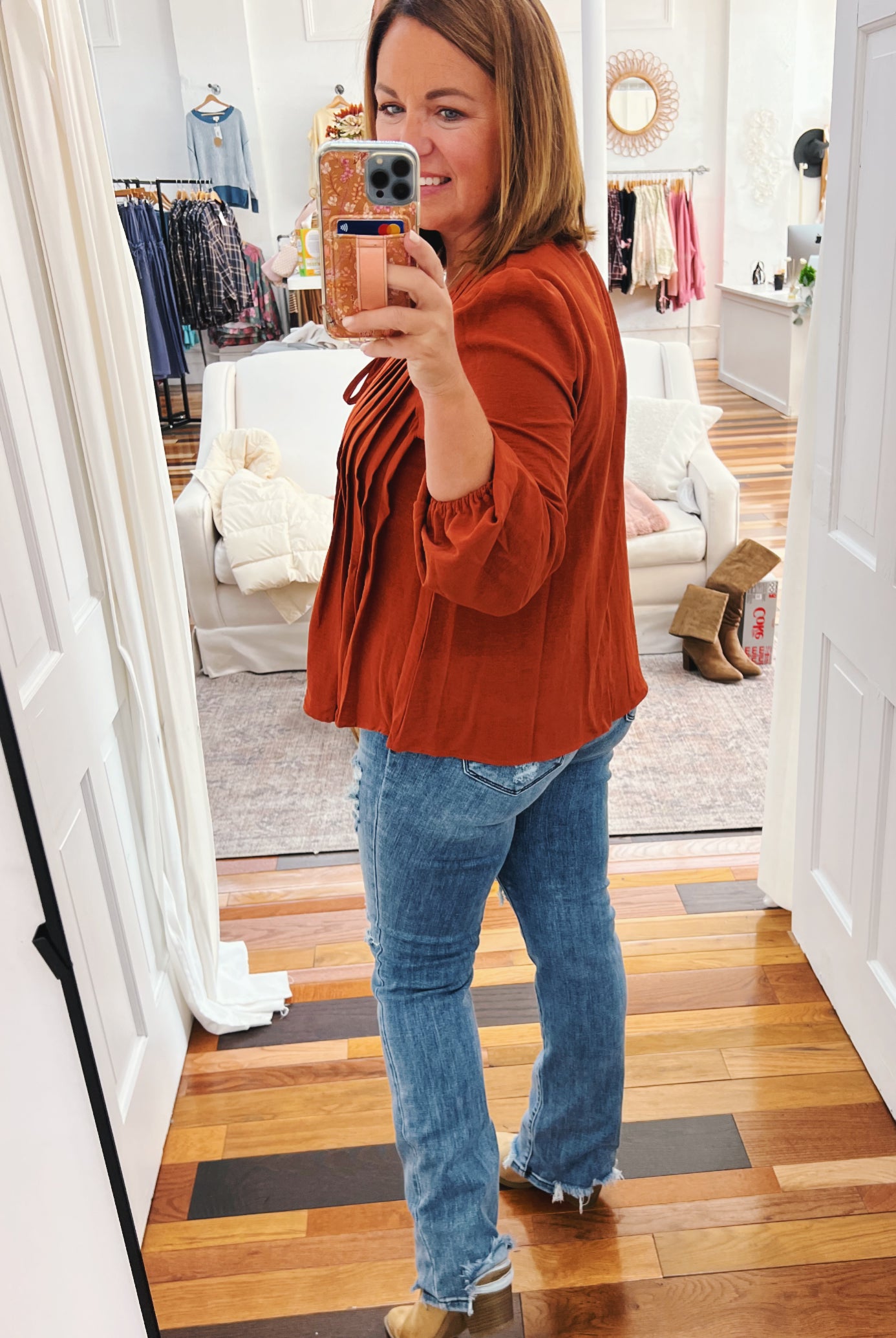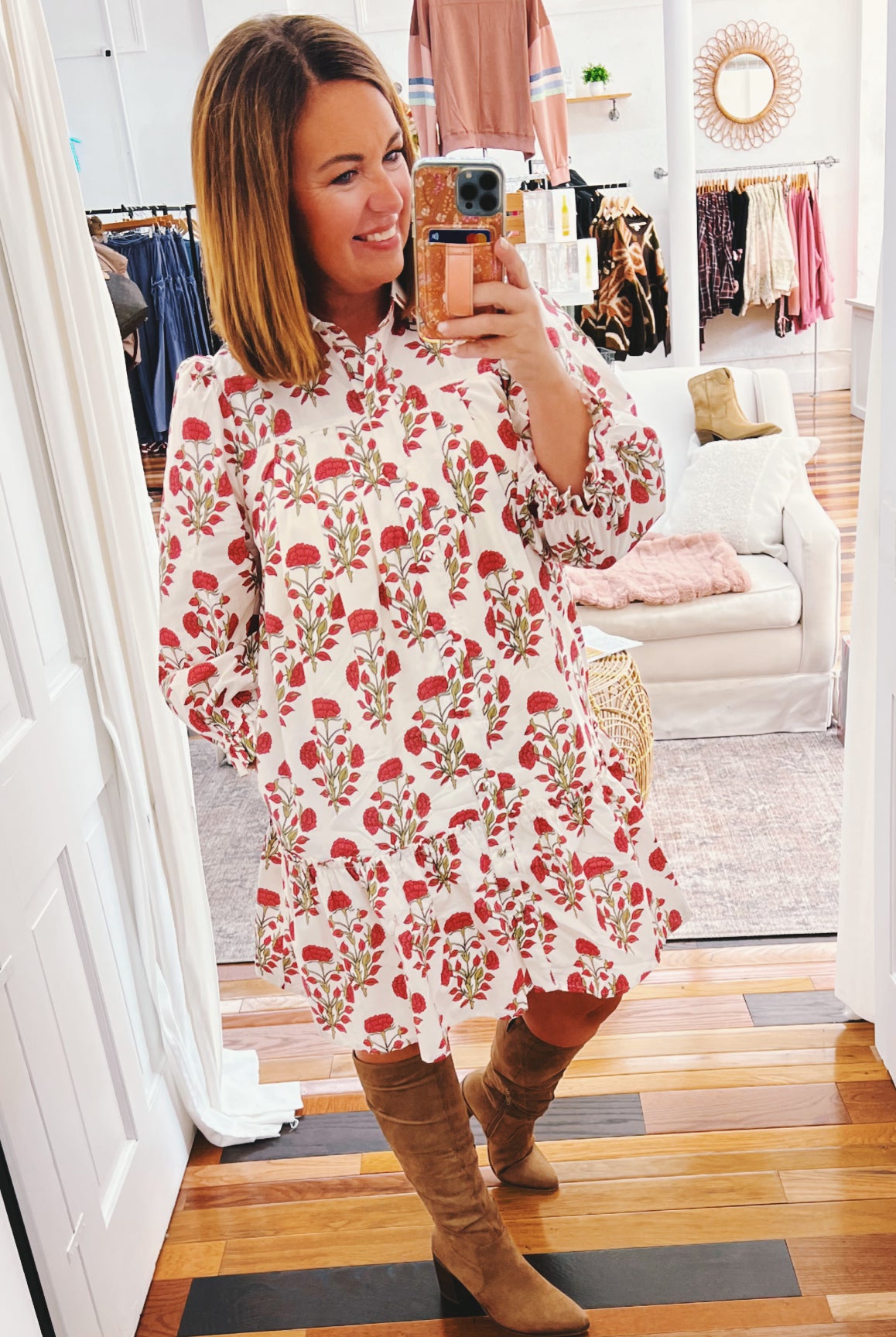 Brighten your wardrobe with the Imogene Floral Ruffle Trim Top in ecru, adorned with charming burgundy floral prints. Its playful ruffle trim adds a touch of vintage sophistication, making this piece both timeless and classic. Perfect for those who love a little flair with their everyday style!